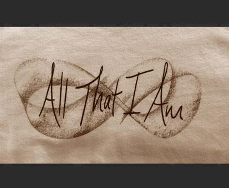 Out of nowhere came a little prompting to turn the charcoal on its side. A couple of fluid strokes later I recognized the infinity symbol in front of me. I laughed, wrote ‘All That I Am’ right over the symbol and a rather triumphant ‘yes’ beside the image, like an official seal of approval. That very middle of the night image was then scanned, cleaned up and became the first design and the basis for the logo.